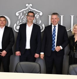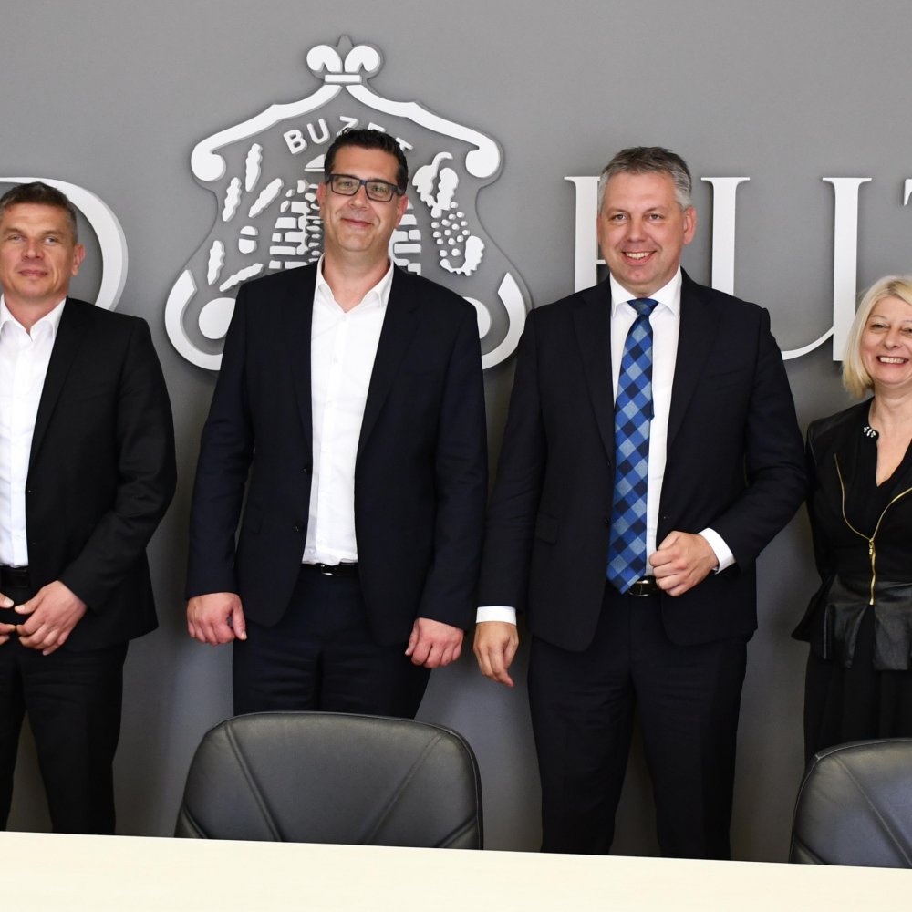 Na obisku v Buzetu sta koprskega župana spremljala tudi podžupanja Jasna Softić in direktor Rižanskega vodovoda Koper Martin Pregelj, delegaciji pa so se v prostorih občine Buzet pridružili še buzetska podžupanja Ana Pernić in predsednik mestnega sveta občine Buzet Dejan Jakac.